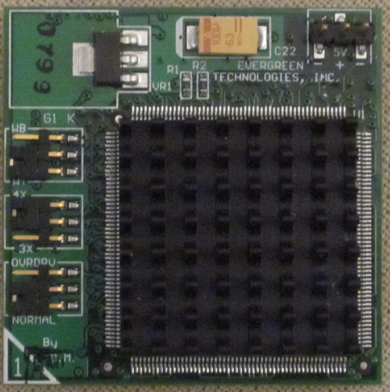 Motherboard: P1 1-2 25 MHz 2-3 33 MHz P2 1-2 PQFP # Soldered CPU only 2-3 PGA # Socket 486/1 used P3-P4 1-2 ODP/ODPR 2-3 SX(PGA) P5 1-2 ODPR # 168 pins OverDrive Processor Replacement 2-3 ODP # 169 pins OverDrive Processor 3-4 SX(PGA) P6 1-2 CMOS CLEAR Original 486SX 33MHz: P1:2-3 P2:2-3 P3-P4:2-3 P5:3-4 P6:1-2 Upgraded 486DX2 66MHz: P1:2-3 P2:2-3 P3-P4:1-2 P5:1-2 P6:1-2 Evergreen 586 / AMD 5x86 133MHz Motherboard: P1:2-3 P2:2-3 P3-P4:1-2 P5:1-2 P6:1-2 Evergreen: WT 4X NORMAL Evergreen 586: WB # Write-Back Cache [Late 486 CPU and motherboard feature] WT # Write-Throught Cache [Early 486 motherboard] 4X # Speed multiplicator for CPU 3X OVRDRV # Raise signal to disable the original CPU NORMAL